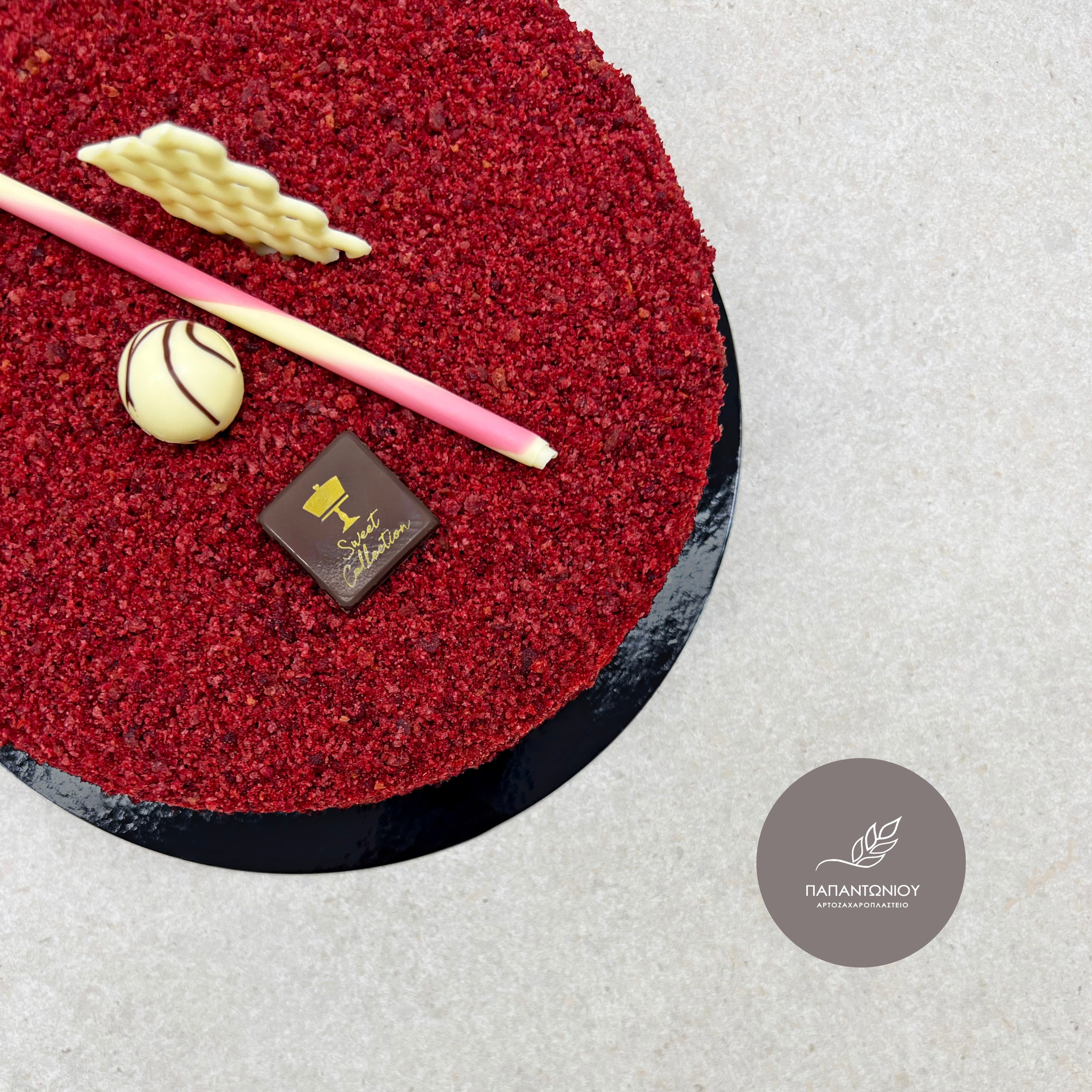 This Red Velvet Cake features layers of moist, rich red velvet sponge, each generously filled and covered with smooth, creamy cream cheese frosting. The deep red color contrasts beautifully with the white frosting, creating a striking visual appeal. The cake offers a perfect balance of sweetness and creaminess, making it a classic choice for celebrations or any special occasion.