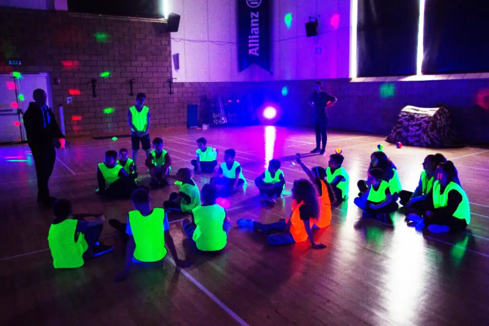 Elevate your child's special day with WhizzFit's Ultimate Kids Party Package! This action-packed hour is designed for thrill-seeking children, featuring an exhilarating lineup of missions and battles. Each participant will have access to the latest pump-action Nerf guns and unlimited ammunition, ensuring the fun never runs out. To add a touch of excitement, we offer two UV face stripes for the kids, turning them into little warriors ready for an adventure. Our camouflage tents serve as perfect barricades for strategic gameplay, while luminous sports bibs enhance their visibility. Safety is our priority, and each child will be provided with protective safety glasses. The party atmosphere is further amplified with UV and disco lighting, creating an electrifying environment, complemented by exciting music. Every session is led by a certified WhizzFit instructor, ensuring that kids have a fantastic time playing four different game variations.