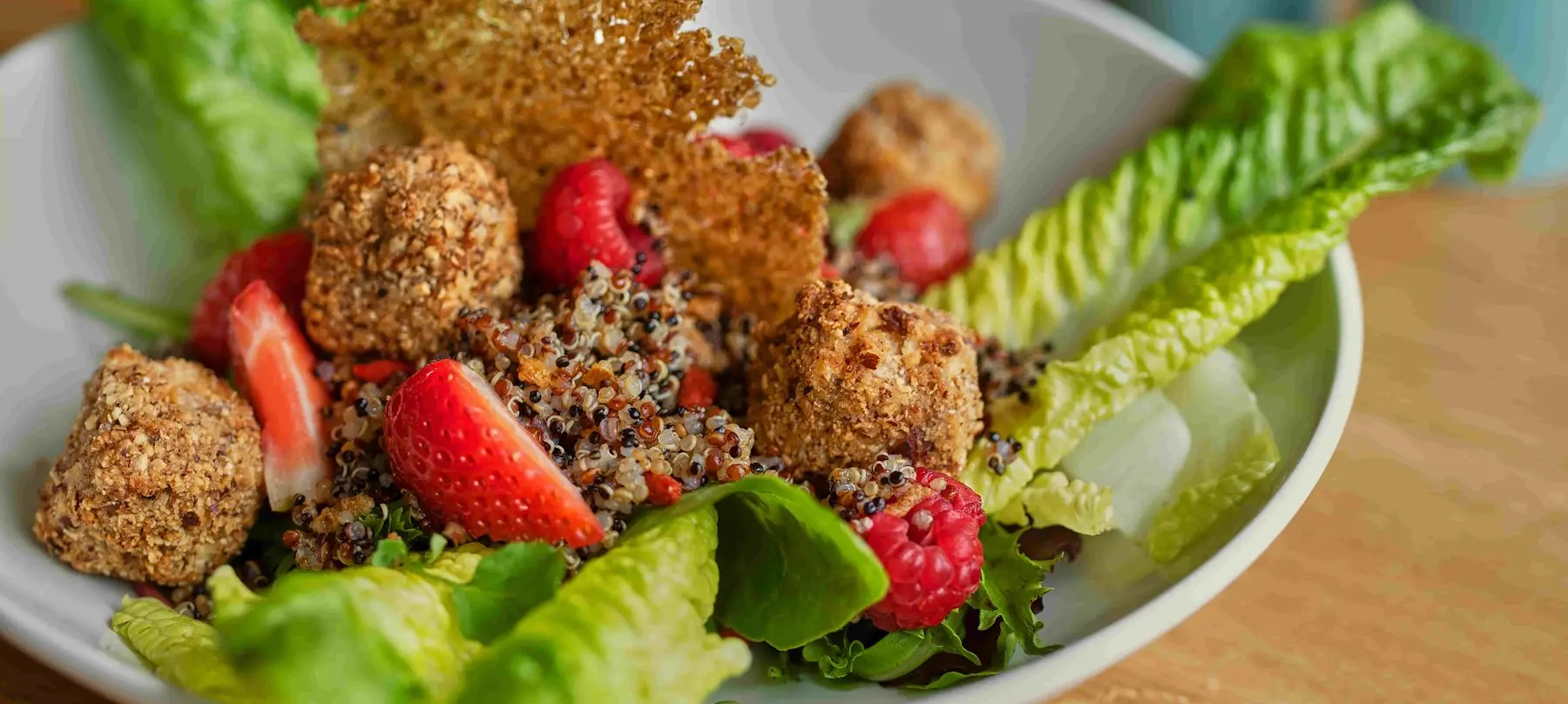 • Goat’s Cheese Croquettes (V) 305 kcal (Contains: E, G, M)