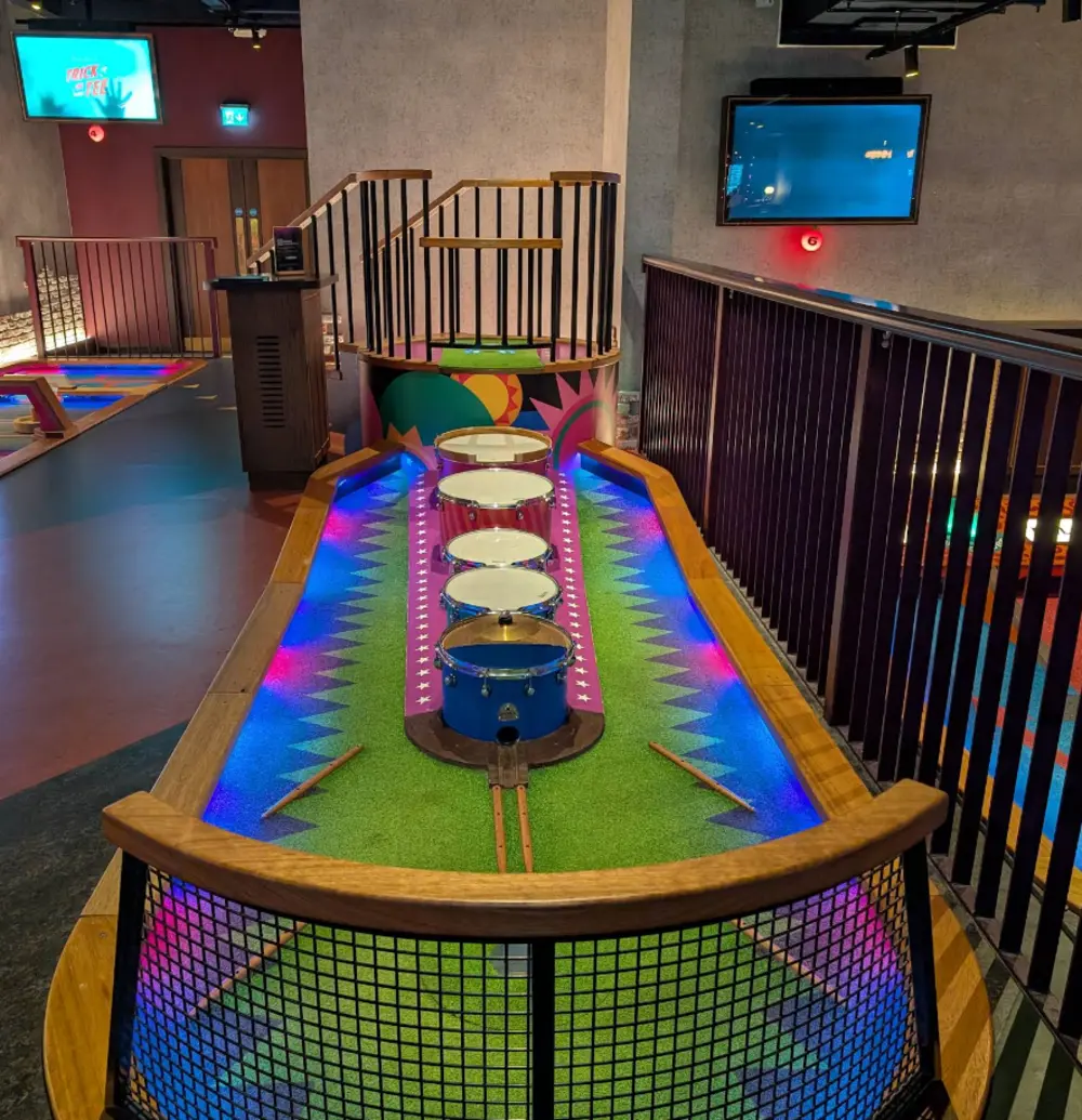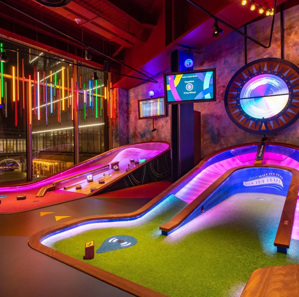 Puttshack Watford offers an exciting kids indoor playground that integrates cutting-edge technology with whimsical mini golf courses. Our facility is designed to provide a fun and safe environment where children can explore, play, and improve their social skills. With a range of engaging activities, from challenging holes to interactive features, every visit guarantees thrilling adventures and cherished memories. Additionally, our stylish decor and vibrant atmosphere create a unique backdrop for family outings, birthday parties, or a casual day of fun. Parents can relax while their little ones immerse themselves in an exhilarating world of play, ensuring both kids and adults enjoy their time at our venue. Join us for an unforgettable experience filled with laughter and excitement at Puttshack! Your family’s next adventure starts here, where technology meets fun!