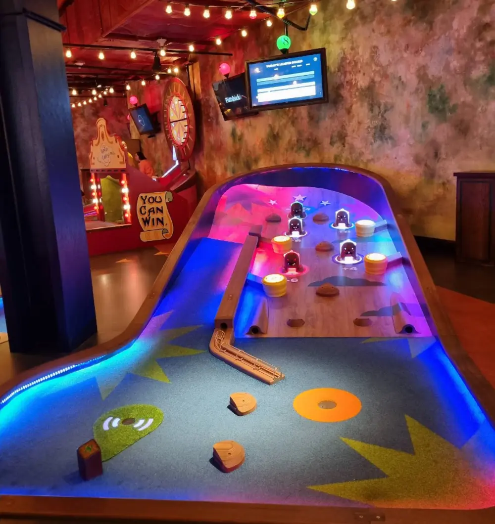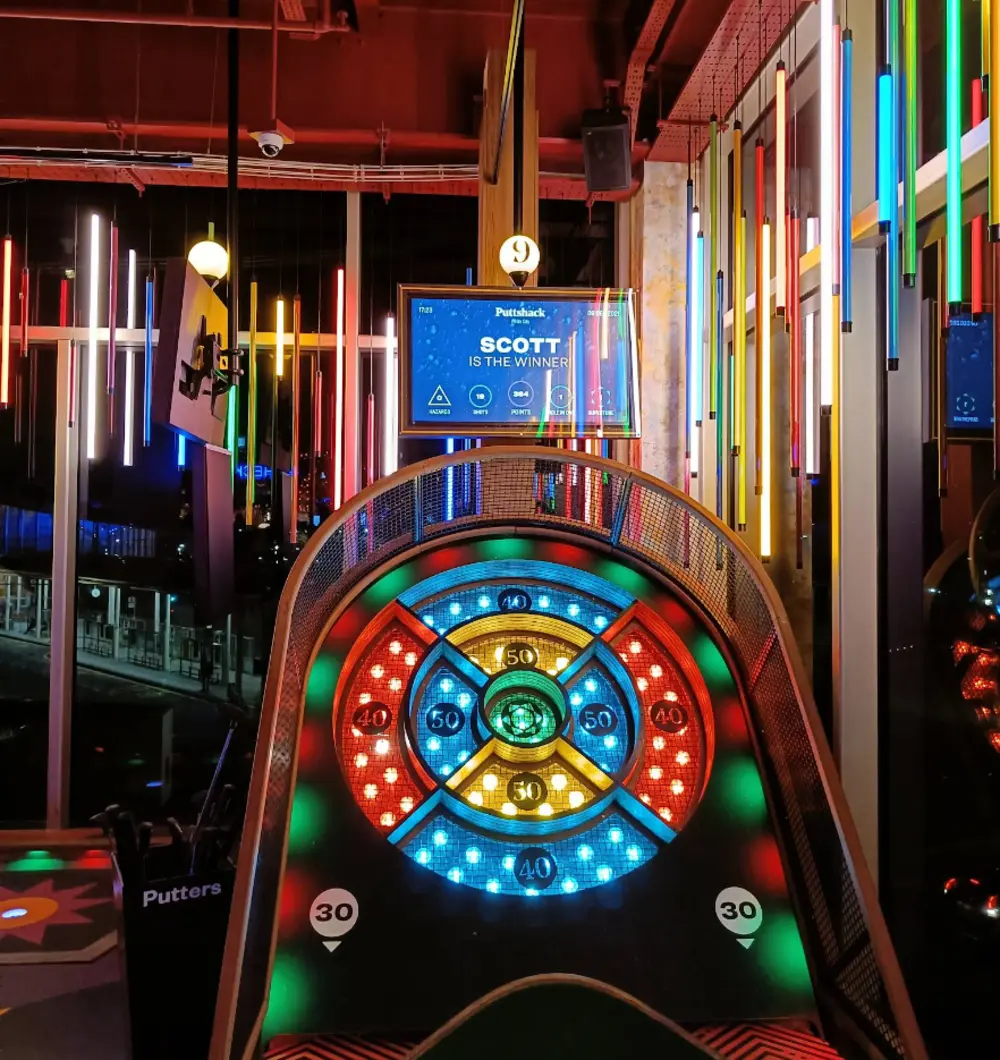 Welcome to Puttshack, White City, where adventure awaits in our amazing kids indoor playground! Designed for fun and excitement, our venue offers a state-of-the-art experience with a unique twist on mini golf. Kids can explore our vibrant playground that combines active play with cutting-edge technology, ensuring endless entertainment for children of all ages. With creatively designed courses that challenge young golfers while sparking their imagination, they can enjoy a mix of friendly competition and creative fun. Our atmosphere is filled with cool vibes and laughter, making it the perfect spot for birthday parties, playdates, or just a day of family fun. Parents can relax while watching their children play in a safe and engaging environment. At Puttshack, we’re committed to creating unforgettable memories that your little ones will cherish.