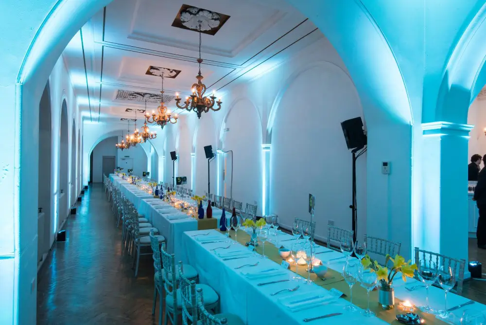 On request, we’ll provide all your service and bar staff, as well as kitchen and serving equipment for hot canapes. This includes cocktail tables, bar tables, linens, etc.
