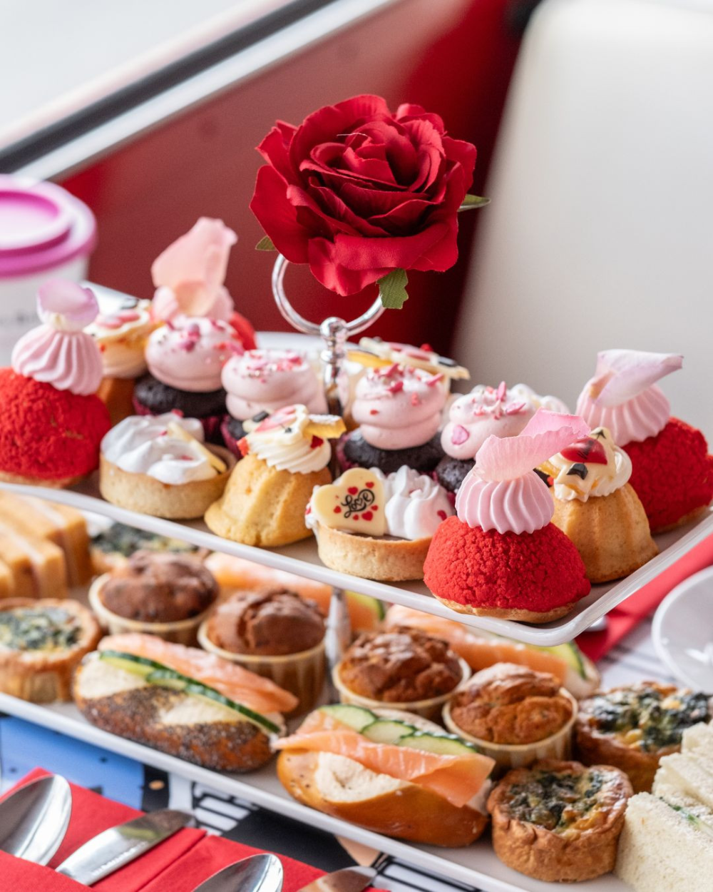 Experience a delightful afternoon tea with Brigit's Bakery & Afternoon Tea Bus Tours, featuring a whimsical Peppa Pig theme. Indulge in a selection of savory mains including Freddy Fox’s Egg and Cress sandwich, Mandy Mouse’s Cheddar Cheese sandwich, and Grandpa Pig’s Chicken and Tomato burger bun. For a fresh touch, enjoy Madame Gazelle’s Veggie Crudité with hummus and Daddy Pig’s Pizza mini margherita, perfect for both kids and adults alike. Satisfy your sweet tooth with an assortment of mini Homemade Cakes and Tarts, including Peppa Pig’s cookie shortbread and Suzy Sheep’s chocolate truffle. Don't miss Granny Pig’s mini scone with jam and clotted cream for that classic touch. Complement your meal with a refreshing selection of drinks, from soothing teas to rich hot chocolate, ensuring a perfect pairing for your treats. Ideal for families or celebrations, this delightful experience creates lasting memories while you savor every bite!